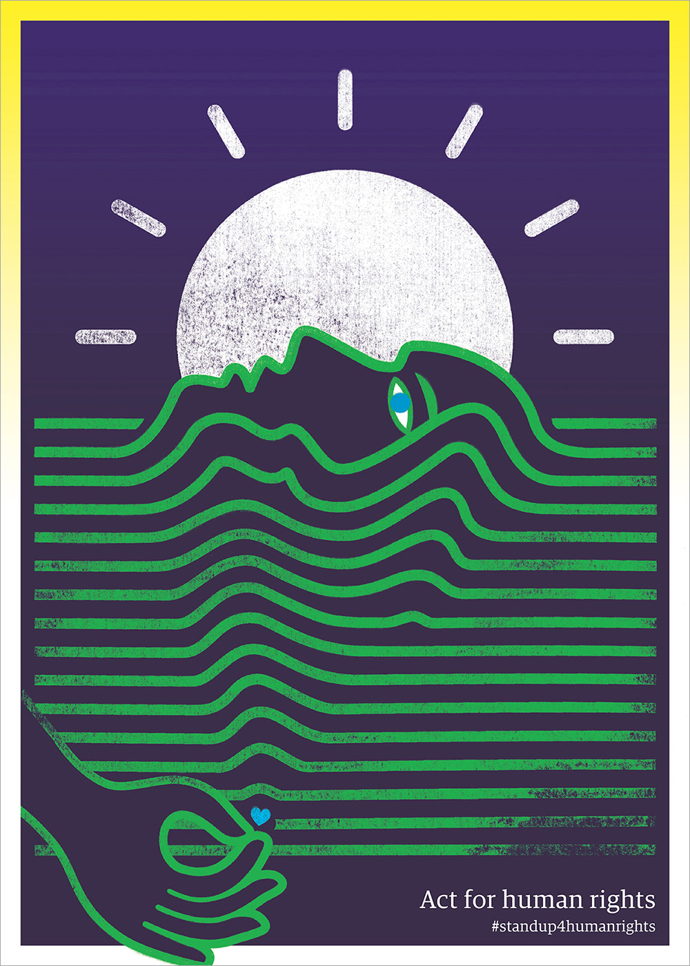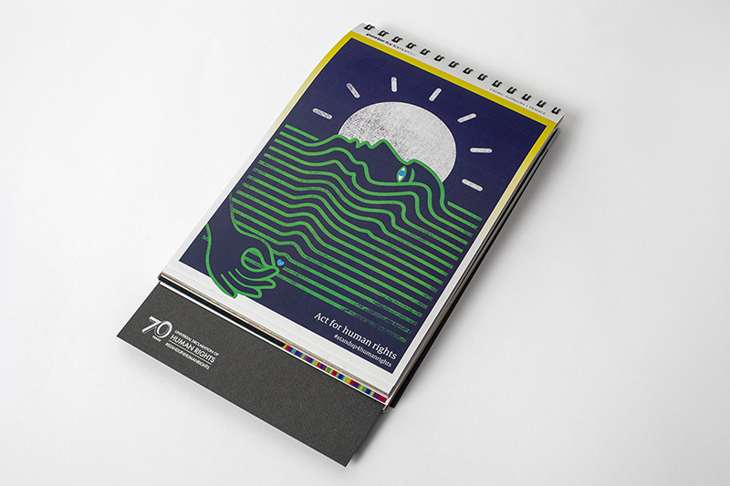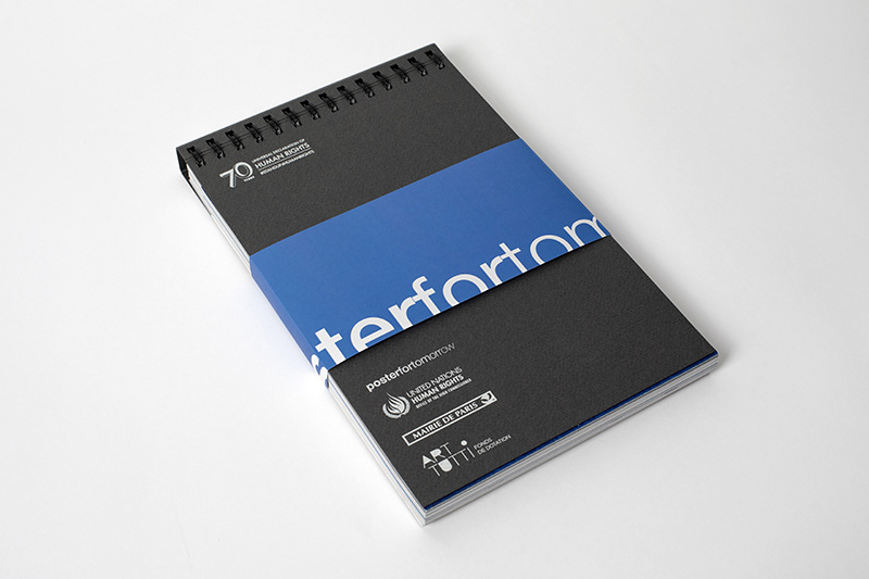 Une affiche réalisée dans le cadre de la célébration du 70e anniversaire de la Déclaration Universelle des Droits de l'Homme, à l'initiative de Poster For Tomorrow et en partenariat avec le Haut Commissariat des Nations Unis aux Droits de l'Homme et La Mairie de Paris. Poster For Tomorrow a édité un catalogue qui compile les 100 affiches produites par des graphistes du monde entier dans le cadre de cet événement.