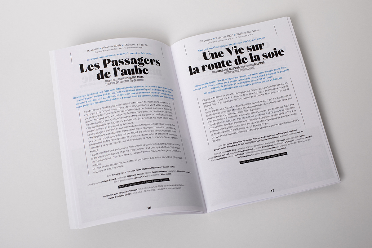 Pour cette saison 2019-2020, l’ensemble des visuels des affiches sont conçues à partir de sculptures d’Antoine Bourdelle dont on prolonge ainsi la vie par un savant collage photographique.